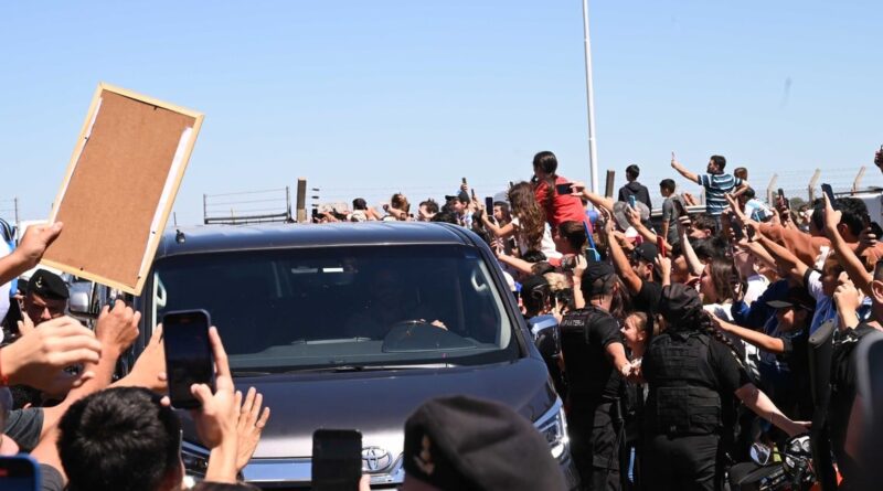 Desde temprano del miércoles, un considerable número de personas, se habla de mil, llegaron hasta las puertas del aeropuerto del área metropolitana de la ciudad de Santa Fe para intentar ver al ídolo. Nada de eso ocurrió. El avión privado bajó, y la familia rosarina de inmediato tomó los vehículos preparados para partir al sur provincial.